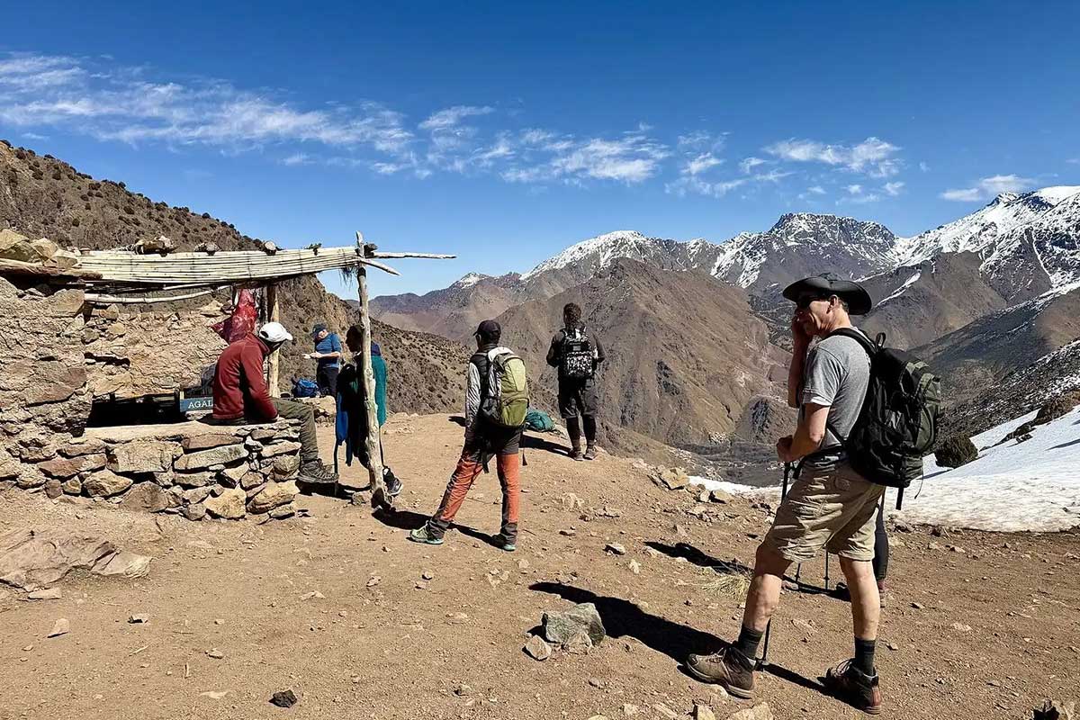 Note saisonnière : Ce trek se pratique toute l’année. En hiver (novembre–avril), crampons et piolets sont requis pour le col du Tizi Aguelzim et la tentative de sommet. Les journées villageoises (Jours 1–3) restent confortables toute l’année.